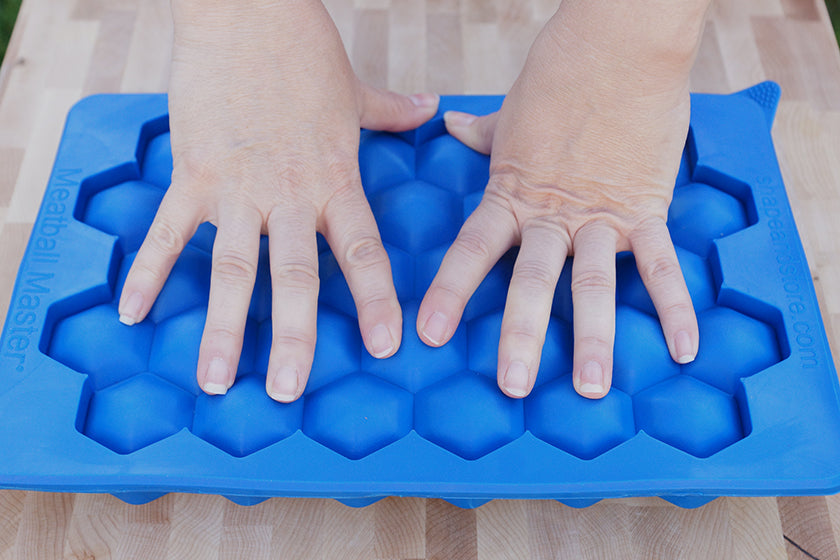 The amazing Meatball Master® takes the hassle out of making meatballs! No more hand rolling or scooping. The Meatball Master's patented cutting action will make 32 perfect meatballs at once.